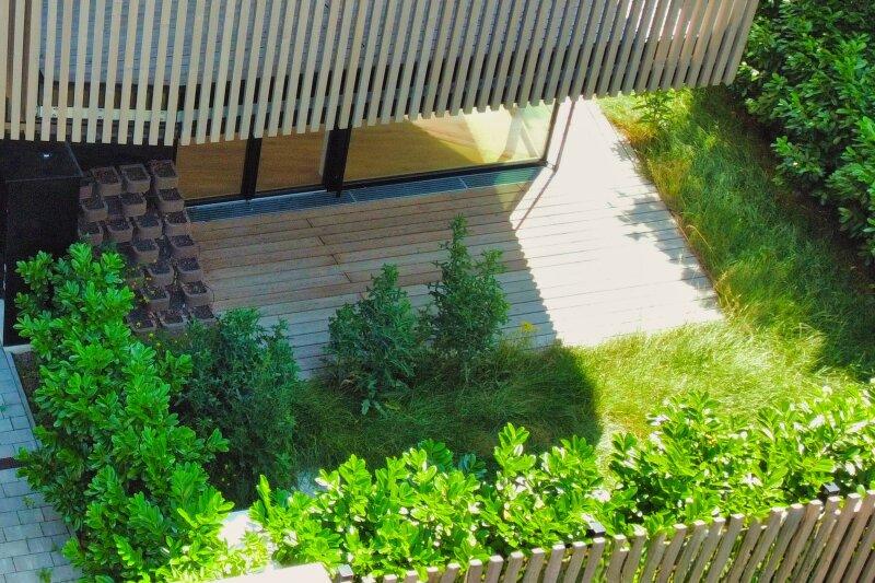 Schon das Haus, in außergewöhnlicher Architektur, ist ein Blickfang für sich. Die einzelnen Objekte sind über den Eingangsbereich und geräumigen Aufzug barrierefrei erreichbar. Zur Ausstattung gehört ein großer Fahrradraum und großzügige Kellerabteile. Es wurde auf nachhaltige Bauweise geachtet. Ein starkes Fundament aus Stahlbeton, trägt Holzwände und eine ökologische Fassade aus Lärchenholz. Die Innenwände sind in Leichtbauweise ausgeführt. Alles in allem erhält das Haus dadurch ein perfektes Raumklima. Mehrfachverglaste Holz/Alu Fenster mit Raffstores zur Außenbeschattung, eine Luft-/Wasser-Wärmepumpe für die Fußbodenheizungen, eine Photovoltaikanlage zur Senkung der laufenden Kosten im Haus, Smart-Home-System und Alarmanlagen tragen zu einem modernen, behaglichen Wohngefühl bei. Das Haus ist an das Glasfasernetz (aktuell max. 1000 Mbit/s) angebunden, die einzelnen Wohnungen wurde ein Internetanschluss und Leerverrohrungen installiert. Zusätzlich ist ein SAT-Anschluss vorhanden.