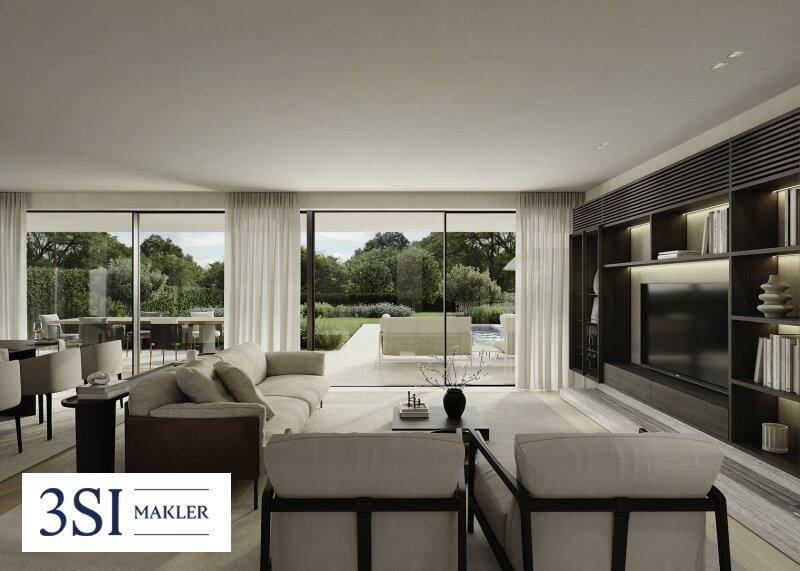 Großzügige Verglasungen sorgen für helle, lichtdurchflutete Räume. Der Wohnbereich bietet direkten Zugang zur Terrasse mit ca. 32,13 m², die in den Privatgarten mit rund 71,26 m² übergeht und zusätzlichen Freiraum im Grünen schafft.