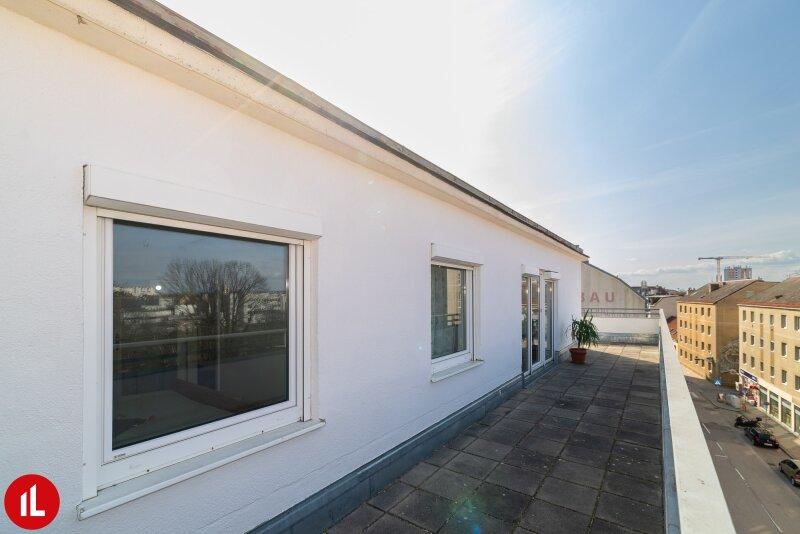 Diese Dachgeschosswohnung befindet sich in einem soliden Ziegelbau und überzeugt vor allem durch ihre außergewöhnliche Außenfläche: eine großzügige Dachterrasse mit rund 62,50 m² und Ost-, Süd- und Westausrichtung. Dadurch genießen Sie den ganzen Tag Sonne sowie einen uneinsichtigen Außenbereich.