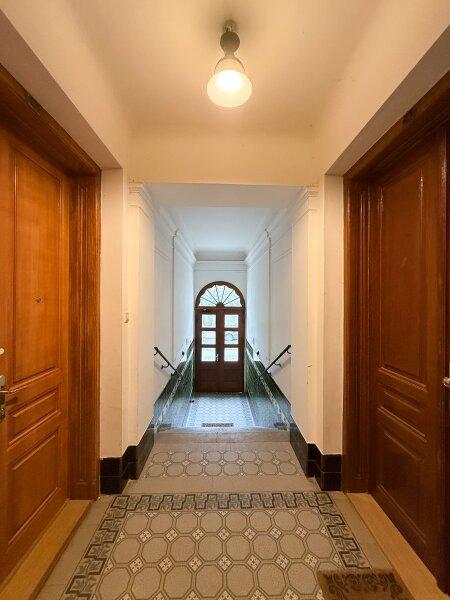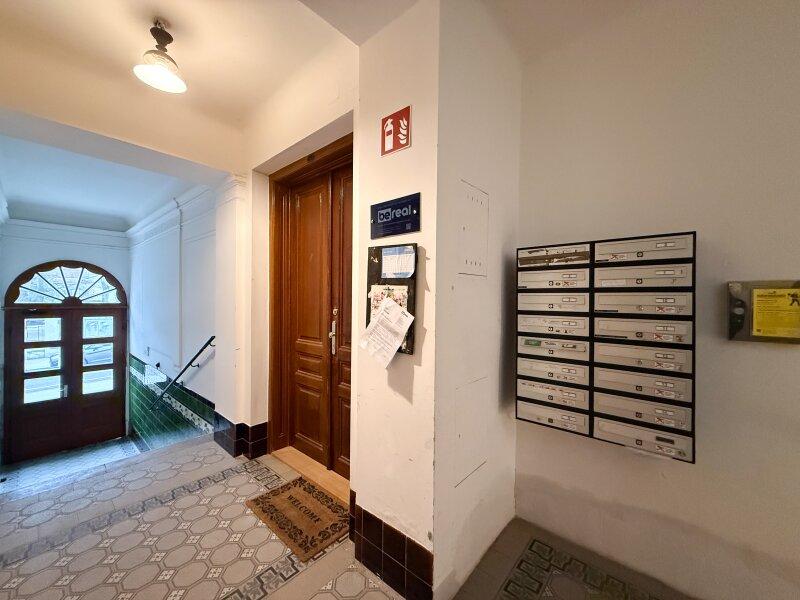 Die Wohnung liegt im ersten Stock eines gepflegten Altbauzinshauses und ist über ein klassisches Stiegenhaus erreichbar. Vom großzügigen Vorraum aus erschließen sich die einzelnen Räume der Wohnung.