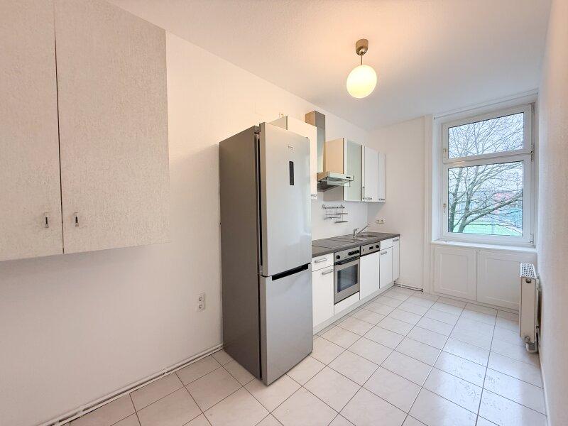 Die Wohnung verfügt über eine Küchennische, die derzeit funktional ausgeführt ist und Potenzial für einen zeitgemäßen Ausbau mit Essplatzlösung bietet. Das separate Badezimmer ist mit Badewanne und WC ausgestattet und verfügt über einen Waschmaschinenanschluss.