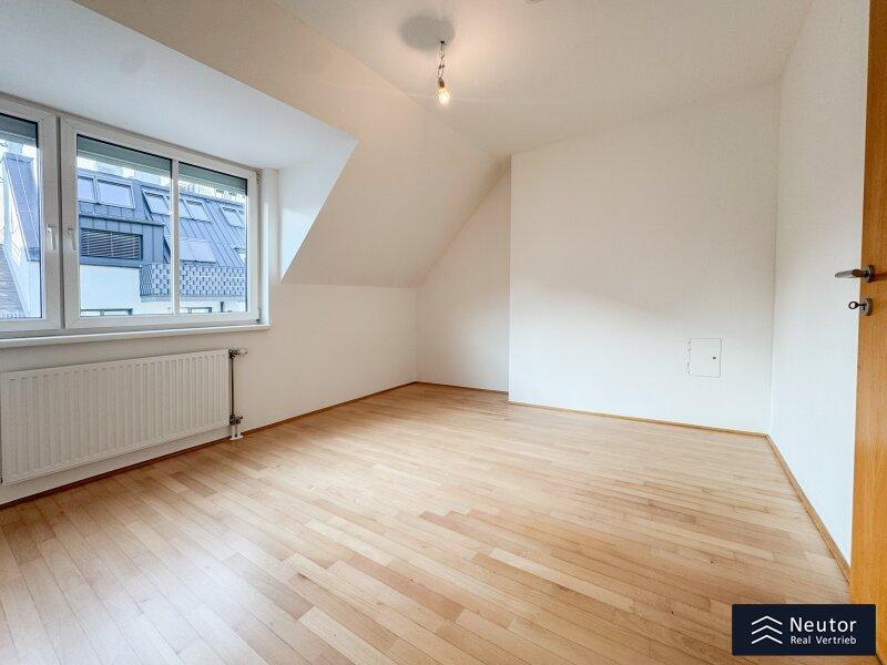 Über die Treppe gelangen Sie in das obere Geschoss der Maisonette. Hier erwarten Sie zwei weitere großzügige Zimmer, die jeweils über eine eigene Terrasse verfügen. Als private Außenbereiche schaffen sie zusätzlichen Freiraum und laden dazu ein, entspannte Stunden unter freiem Himmel zu verbringen.