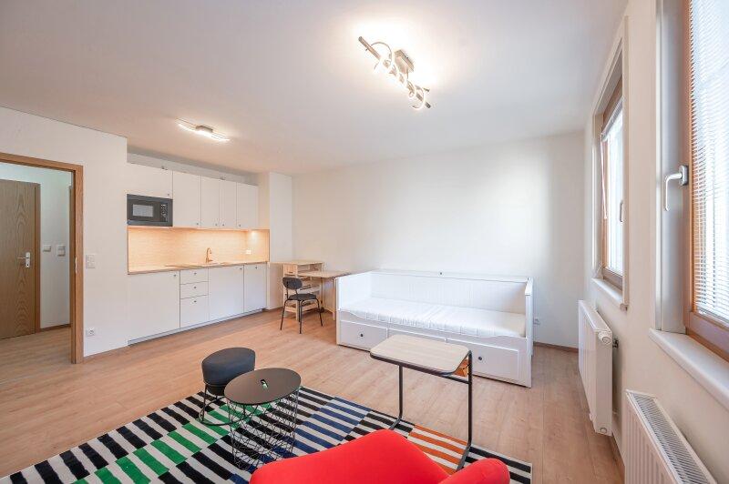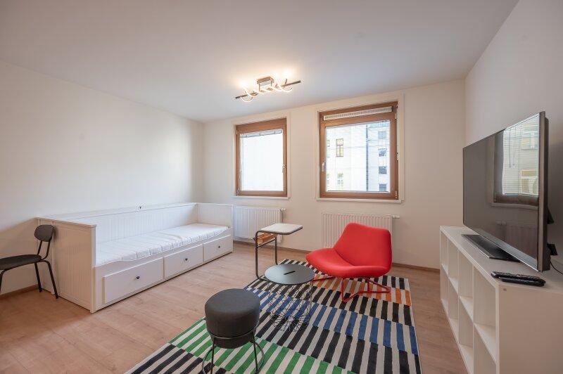 Zur befristeten Vermietung gelangt diese toll aufgeteilte und möbilierte ca. 33 m² große Neubauwohnung in der vierten Etage eines Neubaus in toller Lage des 2. Wiener Gemeindebezirk