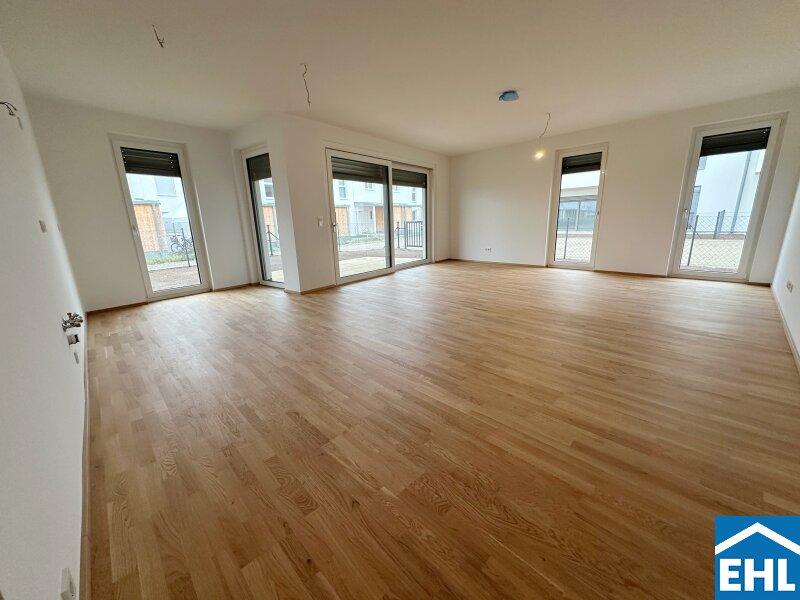 Sämtliche Wohnungen beeindrucken nicht nur durch ihre durchdachten Grundrisse, sondern auch durch ihre sehr hochwertige Ausstattung mit viel Liebe zum Detail. Die attraktive Grundrissgestaltung bietet großzügige Wohnbereiche und gemütliche Schlafzimmer. Zudem wurden Gärten, Balkone, Loggien und Terrassen integriert, welche zusätzlichen Freiraum bieten und den Genuss der umliegenden Grünflächen ermöglichen.