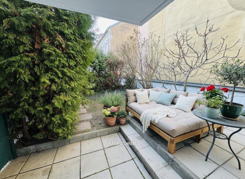 Ein besonderes Highlight der Wohnung ist die großzügige ca. 48 m² große Terrasse mit direktem Zugang zum Garten, die nach Westen ausgerichtet ist und zum Entspannen, Verweilen oder für gesellige Stunden im Freien einlädt.