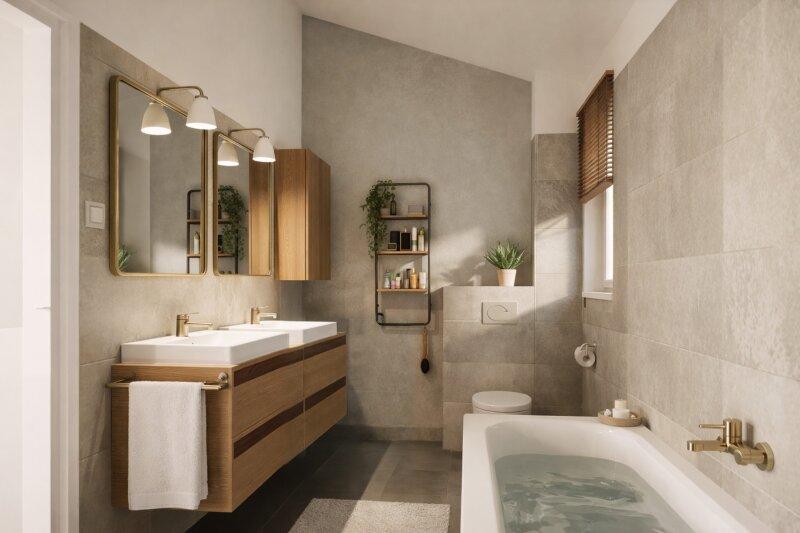 Die dargestellten Schaubilder wurden teilweise digital bearbeitet bzw. mithilfe künstlicher Intelligenz visualisiert. Sie dienen ausschließlich der beispielhaften Darstellung von Einrichtungs- und Gestaltungsmöglichkeiten und stellen keinen verbindlichen Ausführungs- oder Lieferumfang dar. Maßgeblich für die tatsächliche Ausführung sind ausschließlich die vertraglichen Vereinbarungen, Bau- und Ausstattungsbeschreibungen sowie die genehmigten Pläne. Abweichungen in Ausstattung, Materialien, Farben, Möblierung oder Bepflanzung sind möglich.