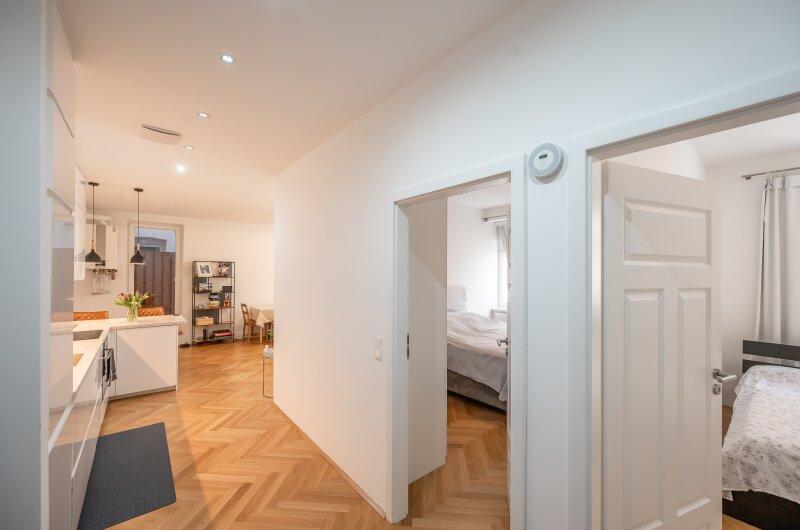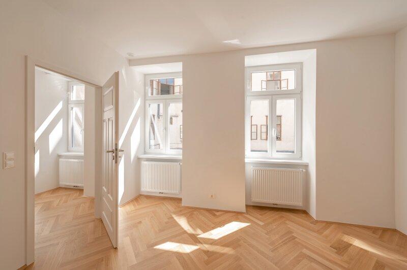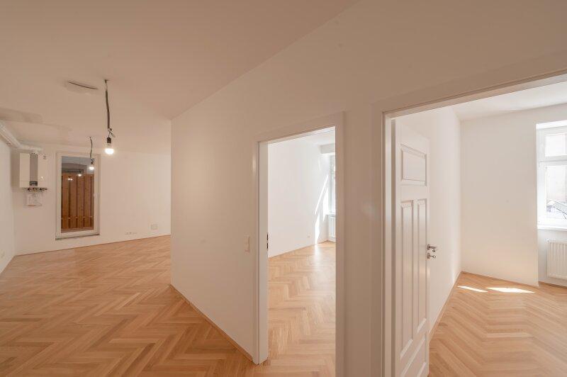 Alle Wohnungen wurde hochwertig ausgestattet. In allen Zimmern wurde ein wunderschöner Parkettboden verlegt, die Nassräume wurden hochwertig verfliest und mit Markenamaturen ausgestattet.