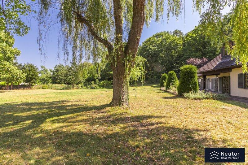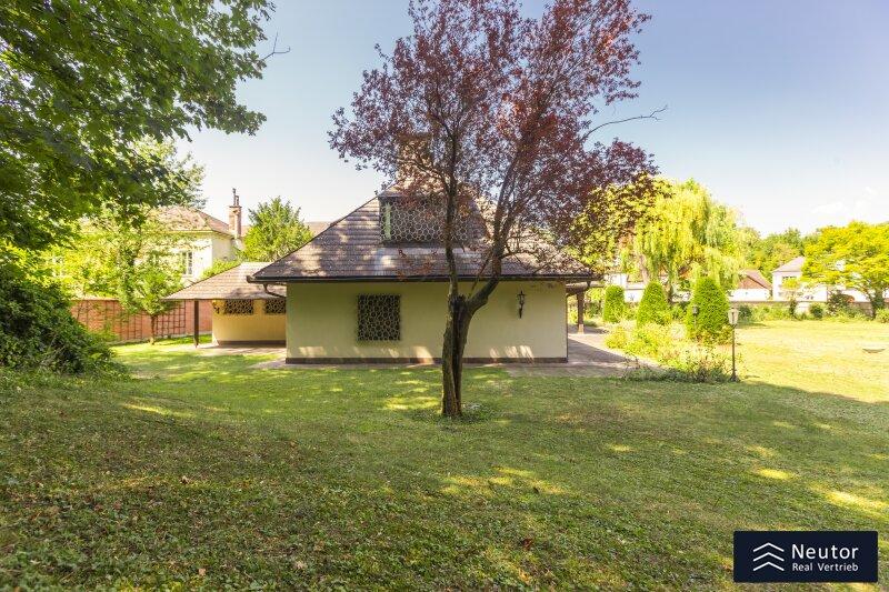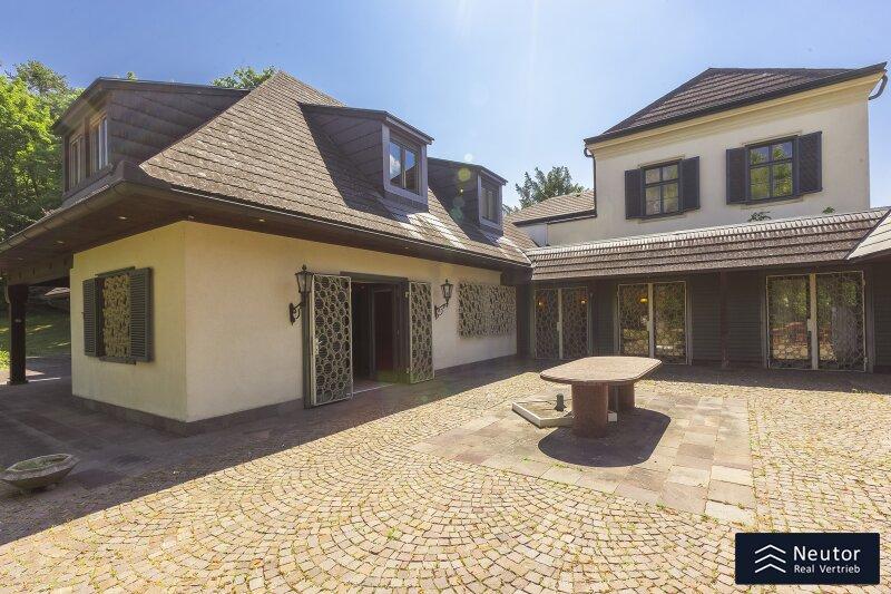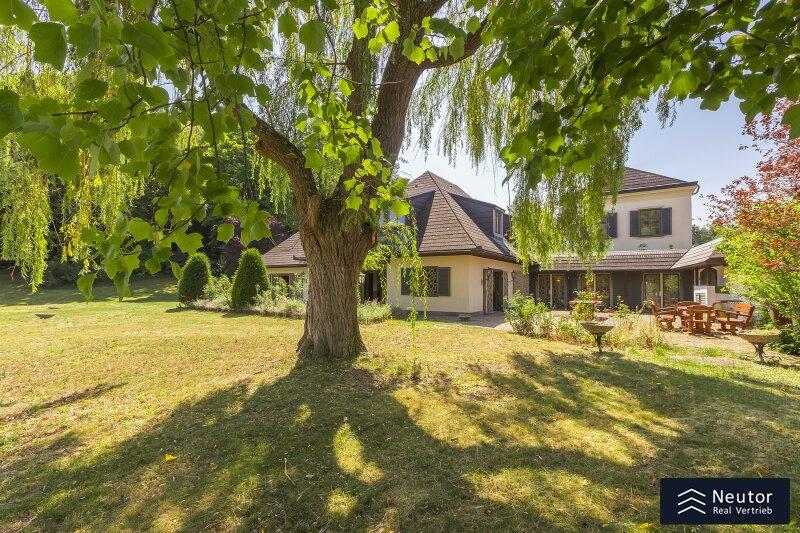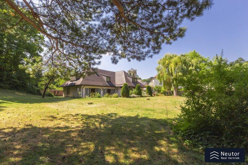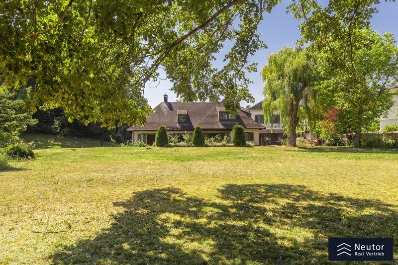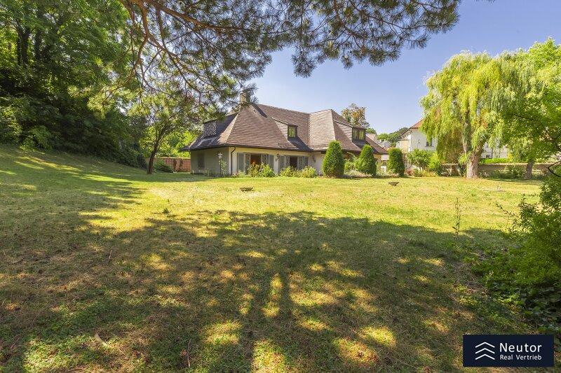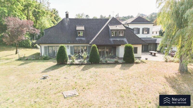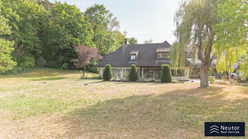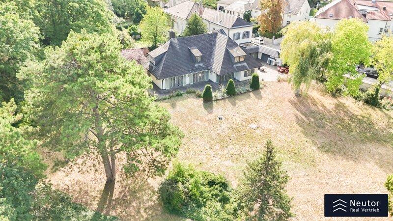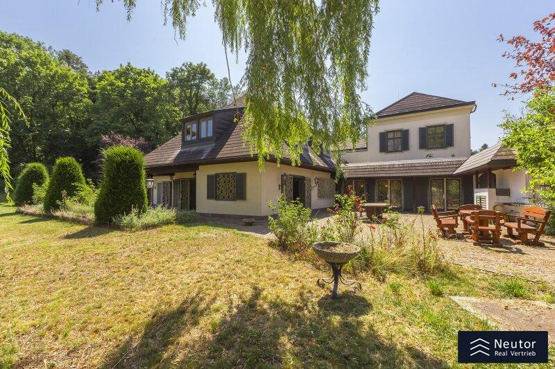 Diese traditionsreiche Villa in Perchtoldsdorf, gelegen auf einem beeindruckenden Grundstück von ca. 4.905 m², wurde nach höchsten Standards erbaut und vereint Großzügigkeit, Privatsphäre und stilvolle Wohnkultur. Beim Betreten führt ein großzügiger Vorraum als einladendes Entrée in das Anwesen, ergänzt durch eine separate Toilette im Eingangsbereich. Von hier eröffnet sich der Zugang zum prächtigen Wohnzimmer, das durch seine Helligkeit und den direkten Zugang zum großen Garten besticht ideal für gesellige Abende oder entspannte Stunden im Freien. Angrenzend liegt ein Speisezimmer, welches sich perfekt für gemeinsame Mahlzeiten eignet, sowie eine funktionale Küche mit viel Gestaltungspotenzial. Im Erdgeschoss, das großteils mit hochwertigem Naturstein verlegt wurde, befindet sich zudem ein Badezimmer, das an ein einzelnes Zimmer angeschlossen ist, welches flexibel als Büro, Bibliothek oder Gästezimmer genutzt werden kann. Eine hauseigene Sauna sowie ein praktischer Hauswirtschaftsraum im Erdgeschoss unterstreichen den exklusiven Wohnkomfort. Über ein stilvolles Stiegenhaus gelangt man ins obere Stockwerk, auf welchem zwei großzügige Schlafzimmer mit jeweils eigenem Badezimmer und begehbarer Garderobe für luxuriösen Komfort sorgen. Ein vielseitig nutzbares Nebengebäude mit Wohnküche, Zimmer, Badezimmer und separatem WC dient ideal als Gästehaus, Personalunterkunft oder Rückzugsort. Der weitläufige Garten mit altem Baumbestand und eigenem Waldabschnitt schafft ein idyllisches Refugium perfekt zum Entspannen, oder auch repräsentative Anlässe. Diese Liegenschaft ist ein wahres Schmuckstück für anspruchsvolle Käufer, die Exklusivität und den Charme Perchtoldsdorfs schätzen.