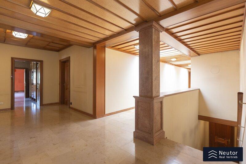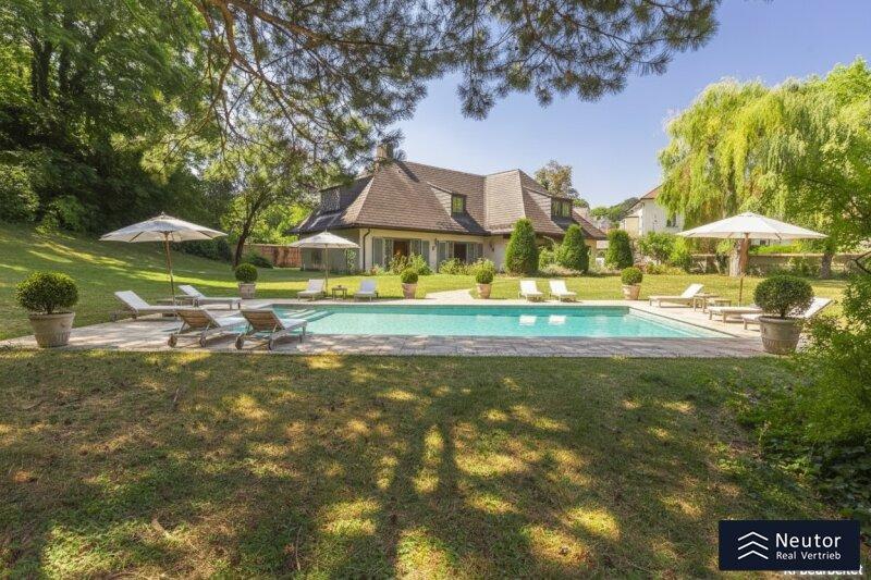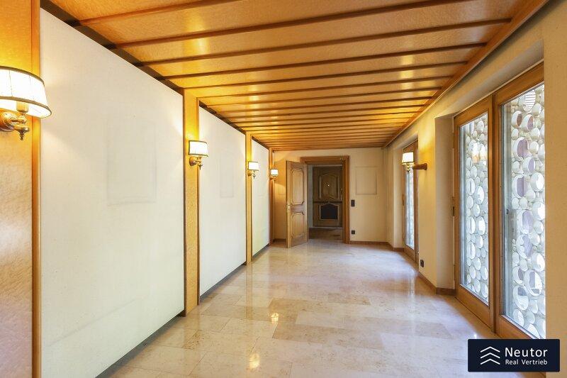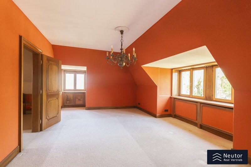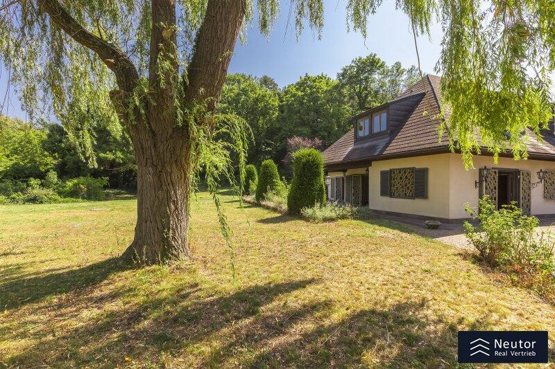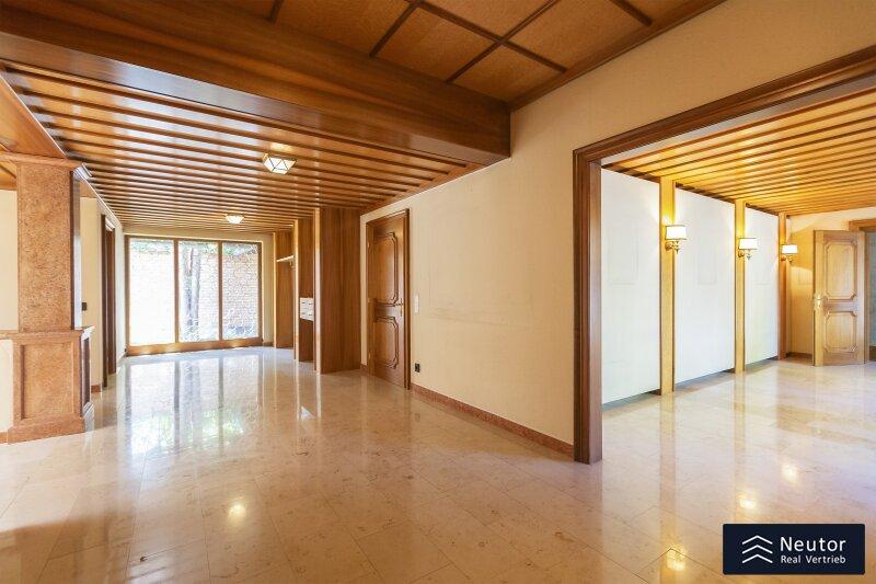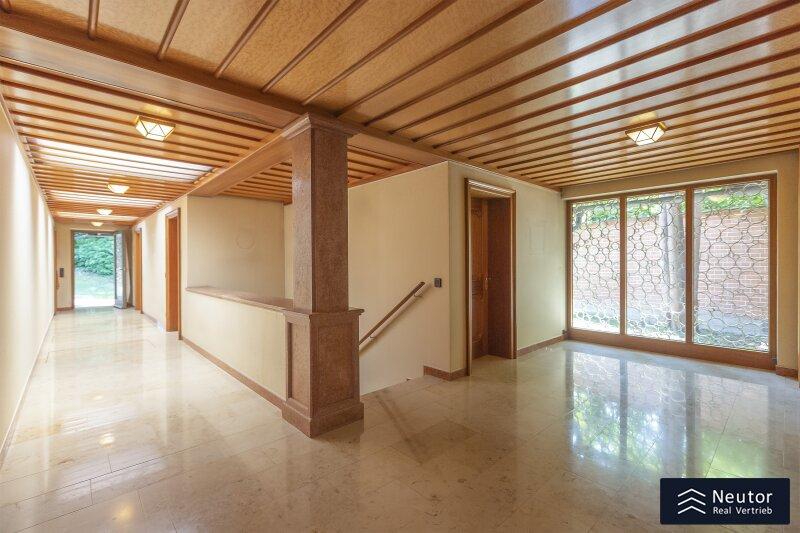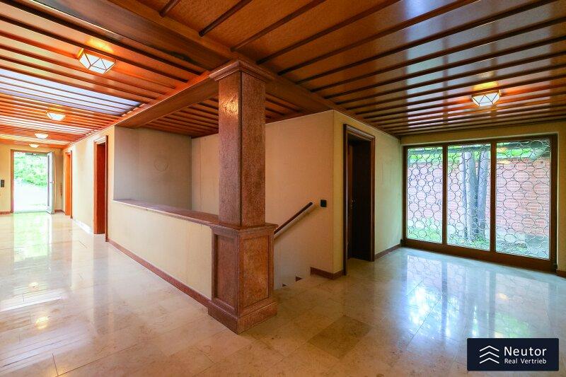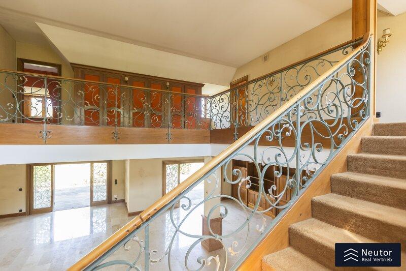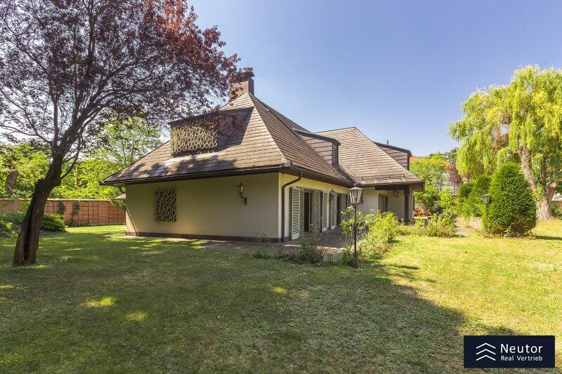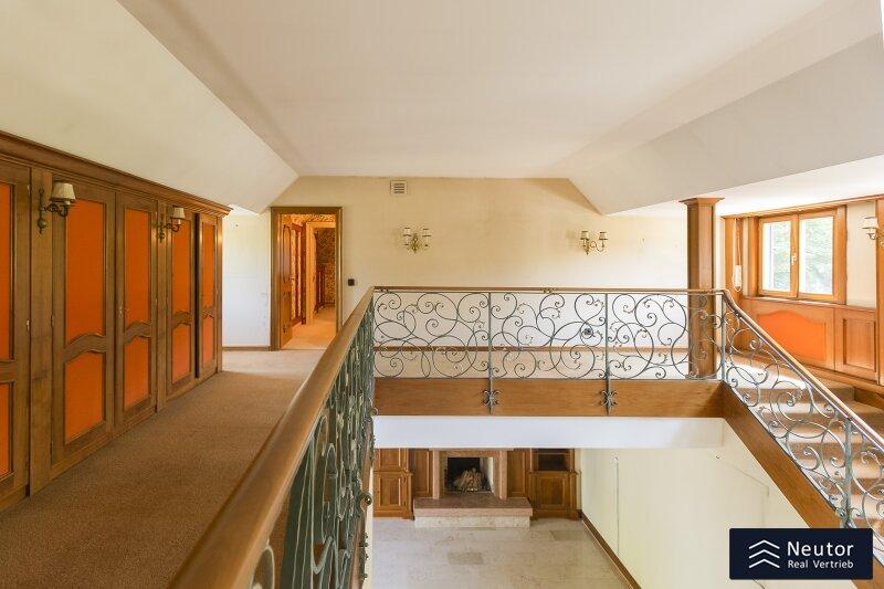 Diese traditionsreiche Villa in Perchtoldsdorf, gelegen auf einem beeindruckenden Grundstück von ca. 4.905 m², wurde nach höchsten Standards erbaut und vereint Großzügigkeit, Privatsphäre und stilvolle Wohnkultur. Beim Betreten führt ein großzügiger Vorraum als einladendes Entrée in das Anwesen, ergänzt durch eine separate Toilette im Eingangsbereich. Von hier eröffnet sich der Zugang zum prächtigen Wohnzimmer, das durch seine Helligkeit und den direkten Zugang zum großen Garten besticht ideal für gesellige Abende oder entspannte Stunden im Freien. Angrenzend liegt ein Speisezimmer, welches sich perfekt für gemeinsame Mahlzeiten eignet, sowie eine funktionale Küche mit viel Gestaltungspotenzial. Im Erdgeschoss, das großteils mit hochwertigem Naturstein verlegt wurde, befindet sich zudem ein Badezimmer, das an ein einzelnes Zimmer angeschlossen ist, welches flexibel als Büro, Bibliothek oder Gästezimmer genutzt werden kann. Eine hauseigene Sauna sowie ein praktischer Hauswirtschaftsraum im Erdgeschoss unterstreichen den exklusiven Wohnkomfort. Über ein stilvolles Stiegenhaus gelangt man ins obere Stockwerk, auf welchem zwei großzügige Schlafzimmer mit jeweils eigenem Badezimmer und begehbarer Garderobe für luxuriösen Komfort sorgen. Ein vielseitig nutzbares Nebengebäude mit Wohnküche, Zimmer, Badezimmer und separatem WC dient ideal als Gästehaus, Personalunterkunft oder Rückzugsort. Der weitläufige Garten mit altem Baumbestand und eigenem Waldabschnitt schafft ein idyllisches Refugium perfekt zum Entspannen, oder auch repräsentative Anlässe. Diese Liegenschaft ist ein wahres Schmuckstück für anspruchsvolle Käufer, die Exklusivität und den Charme Perchtoldsdorfs schätzen.