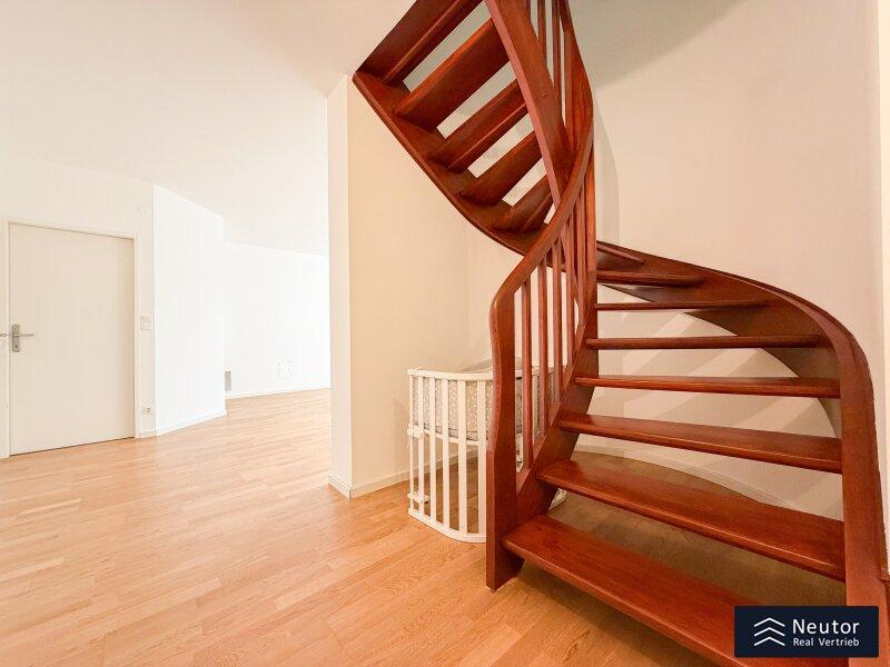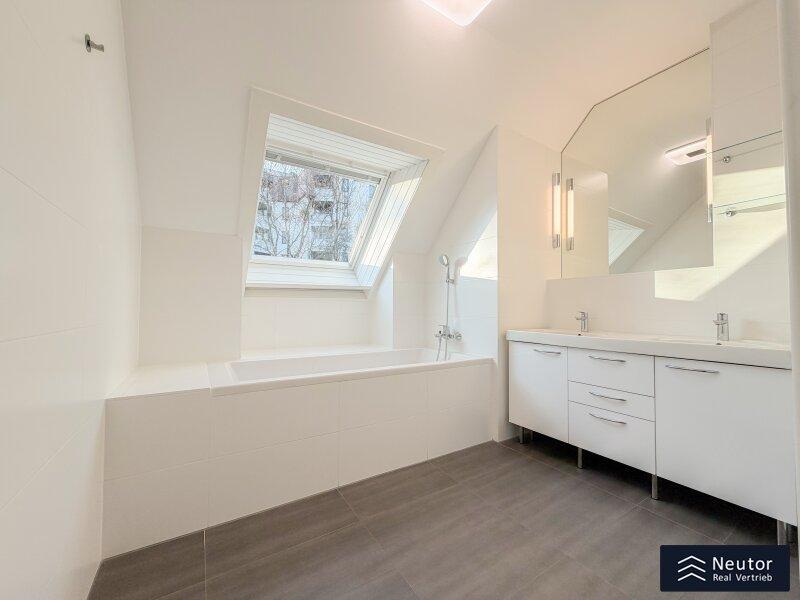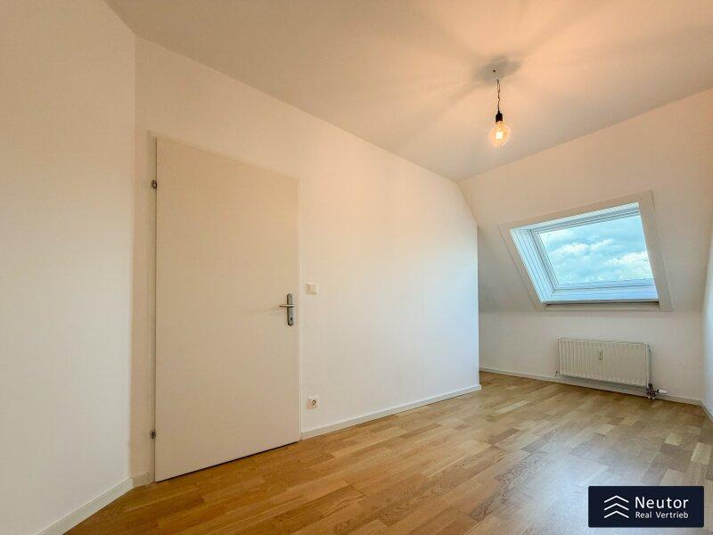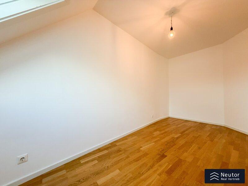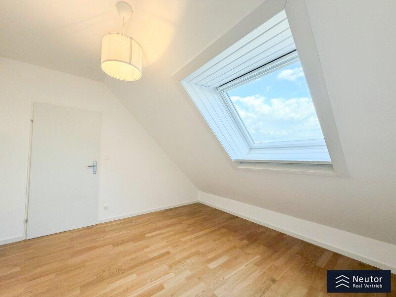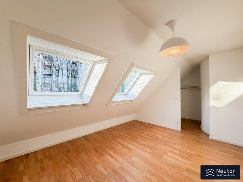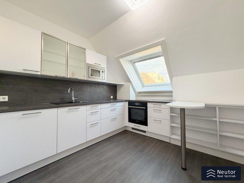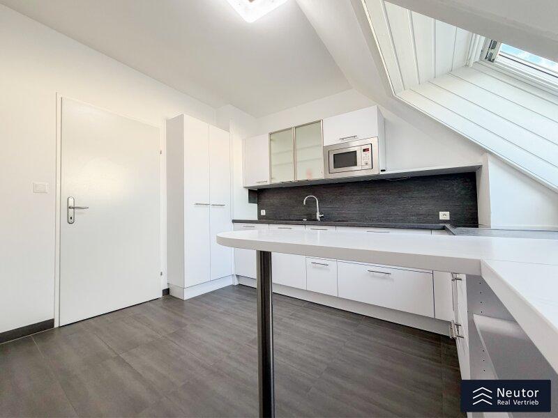 Diese außergewöhnliche Dachgeschoss-Maisonette verbindet modernen Wohnkomfort, stilvolle Architektur und lichtdurchflutete Räume zu einem harmonischen Gesamterlebnis. Beim Betreten der Wohnung empfängt Sie ein großzügiger Vorraum. Rechts führt eine elegante Treppe in das obere Geschoss, links befindet sich die voll ausgestattete Einbauküche mit hochwertigen Geräten sowie eine praktische, direkt angrenzende Speis, ideal für Hobbyköche und alle, die zusätzlichen Stauraum schätzen. Der weitläufige Wohn- und Essbereich bildet das Herzstück der Wohnung. Großzügige Fensterflächen lassen viel Tageslicht herein und schaffen eine warme, einladende Atmosphäre. Von hier gelangen Sie auf die westseitige Terrasse, die durch ihre Größe perfekt für gemütliche Stunden im Freien oder gesellige Abende mit Freunden und Familie ist. Ein weiteres Zimmer kann flexibel als Schlaf-, Arbeits- oder Gästezimmer genutzt werden. Das Dusch-WC rundet die untere Etage funktional ab. Über die Wendeltreppe erreichen Sie das obere Stockwerk, das ebenfalls durch Helligkeit und ein offenes Wohngefühl überzeugt. Ein zentral gelegenes Vorzimmer verbindet zwei gut geschnittene Zimmer, die sich als Schlafzimmer, Kinderzimmer oder Homeoffice eignen. Ein separates WC sowie ein modern gestaltetes Badezimmer mit Badewanne bieten zusätzlichen Komfort. Die gesamte Wohnung besticht durch ihre charmante Raumaufteilung, klare Linienführung und große Fenster, die zu jeder Tageszeit ein angenehmes Wohlfühlambiente schaffen. Eine eigener Garagenstellplatz sorgt für zusätzlichen Komfort und komplettiert dieses hochwertige Wohnangebot.