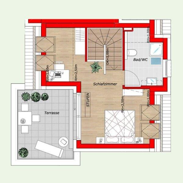 Die dargestellten Schaubilder wurden teilweise digital bearbeitet bzw. mithilfe künstlicher Intelligenz visualisiert. Sie dienen ausschließlich der beispielhaften Darstellung von Einrichtungs- und Gestaltungsmöglichkeiten und stellen keinen verbindlichen Ausführungs- oder Lieferumfang dar. Maßgeblich für die tatsächliche Ausführung sind ausschließlich die vertraglichen Vereinbarungen, Bau- und Ausstattungsbeschreibungen sowie die genehmigten Pläne. Abweichungen in Ausstattung, Materialien, Farben, Möblierung oder Bepflanzung sind möglich.