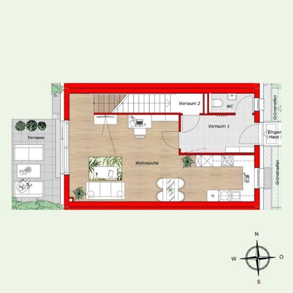 Hier bieten 6 schlüsselfertige Reihenhäuser viel Licht, klare Grundrissgestaltung und Freiflächen mit Mehrwert: Garten, Terrasse und Dachterrasse schaffen Platz für Familienzeit und Erholung. Massiv aus Ziegel gebaut, energieeffizient ausgestattet und auf vier Ebenen gedacht ein Zuhause, das heute begeistert und dauerhart Wert behält.