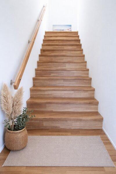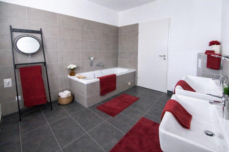 Je nach Objekt werden Kaufpreise mit und ohne Oberflächenpaket angeboten. Das Oberflächenpaket beinhaltet Malerarbeiten, Fliesen-/Plattenarbeiten (z. B. Feinsteinzeug 60 × 60 cm Ares Warm Beige) und Bautischlerarbeiten (z. B. Fertigparkett Eiche Landhausdiele), hochwertige Sanitärausstattung z.B. mit Villeroy und Boch. Für weitere Informationen zur Bau- und Ausstattung kontaktieren Sie uns gerne.