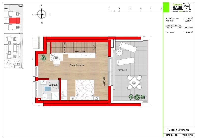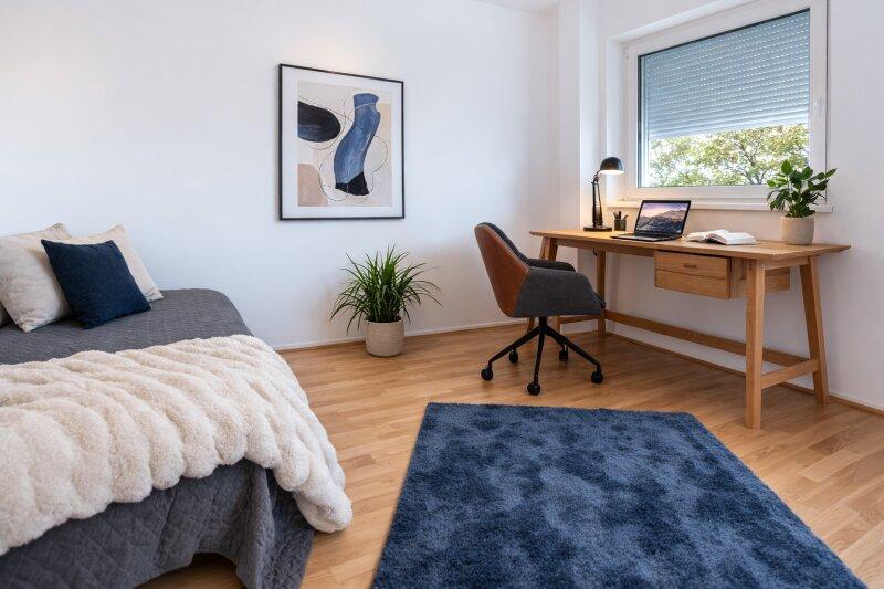 Im Obergeschoss schaffen zwei Schlafzimmer, ein Schrankraum und ein großes Badezimmer ideale Voraussetzungen für Rückzug und Komfort im Alltag. Das Dachgeschoss rundet das Raumangebot mit einem weiteren Schlafzimmer, zusätzlichem Bad, Platz für ein Büro und einer privaten Terrasse ab perfekt als Master-Bereich, Home Office oder persönliche Ruhezone.