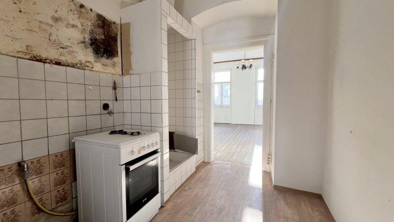Die Wohnung befindet sich in einem unsanierten Zustand und kann dank des großen Vorraums zu einer schönen, gut bewohnbaren Garcionerre gestaltet werden.