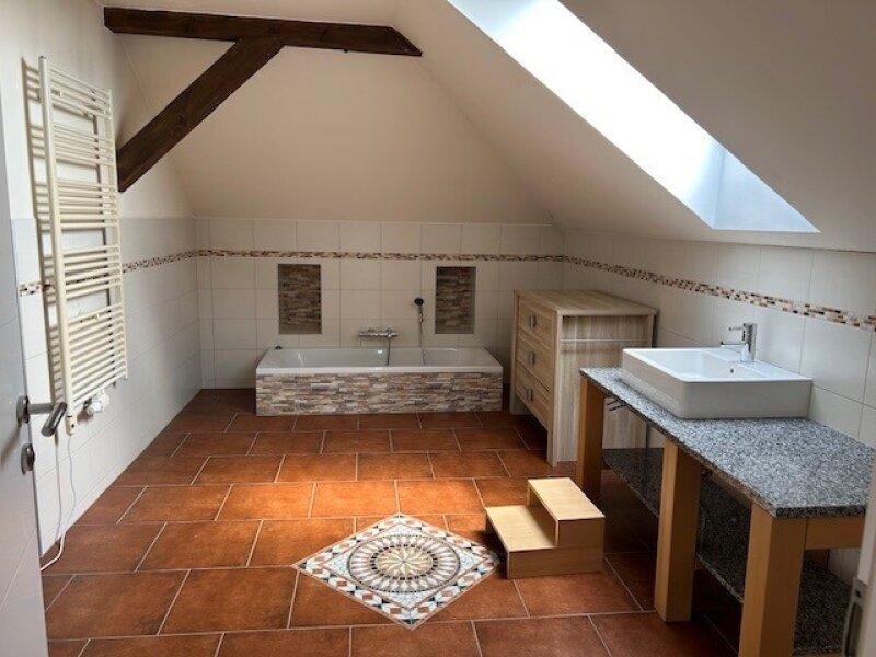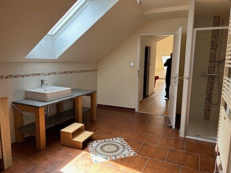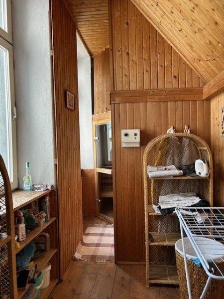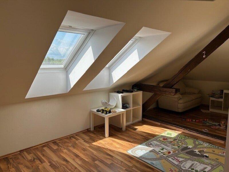 Die Wohnung im Obergeschoß teilt sich in 4 Zimmer, Küche, Bad, WC, Vorraum, Abstellraum und Sauna. Das ausgebaute Dachgeschoß teilt sich in 4 Schlafzimmer, gr Wohn- Esszimmer und Küche, Bad, WC und Abstellraum.