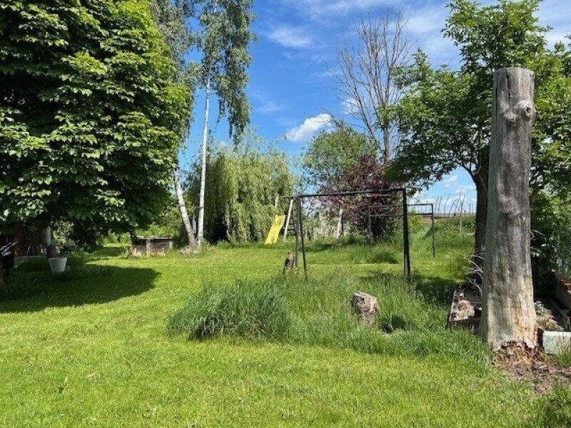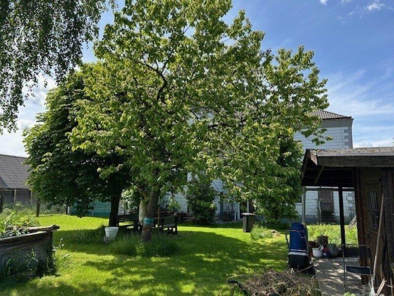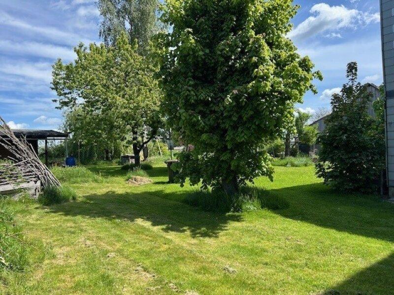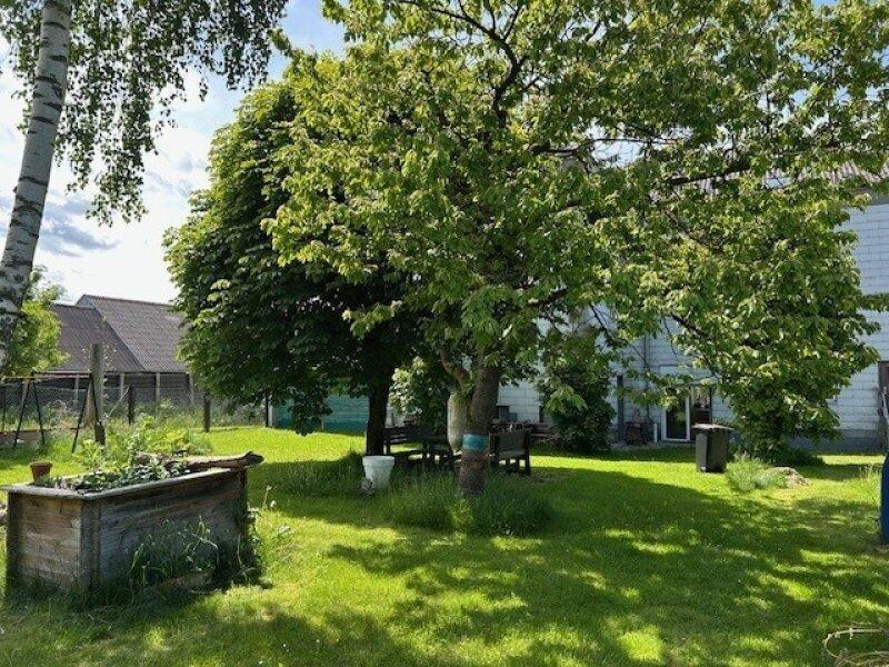 Vor dem Haus ist eine Doppelgarage und einige Parkplätze. Der geschmachvoll angelegte Garten erstreckt sich hinter dem Haus und ist eingezäunt.