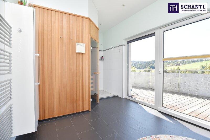 - im OG: riesengroßes Badezimmer mit Dusche & Sauna 16,90m² und Ausgang zum Balkon 17,45m²