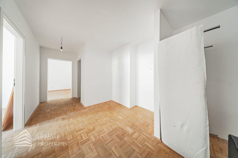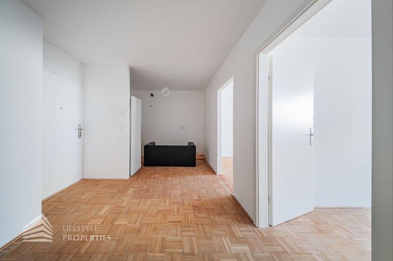 Beim Betreten der Wohnung gelangen Sie in einen einladenden Vorraum. Von hier aus erreichen Sie die separate Küche sowie die weiteren Räume der Wohnung, einschließlich der Zimmer und des Badezimmers mit WC. Die durchdachte Raumaufteilung bietet vielfältige Nutzungsmöglichkeiten.