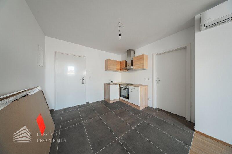 Beim Betreten der Wohnung gelangen Sie direkt in die großzügige Wohnküche. Von hier aus erreichen Sie das Schlafzimmer sowie das Badezimmer mit WC. Ein weiterer Pluspunkt dieser Wohnung ist die hochwertige Ausstattung: Eine moderne Küche ist bereits im Kaufpreis inkludiert. Zudem verfügt die Wohnung über eine Klimaanlage, die auch an heißen Sommertagen für angenehme Temperaturen sorgt, sowie über außenliegende elektrische Rollläden, die zusätzlichen Komfort und optimalen Sonnenschutz bieten.