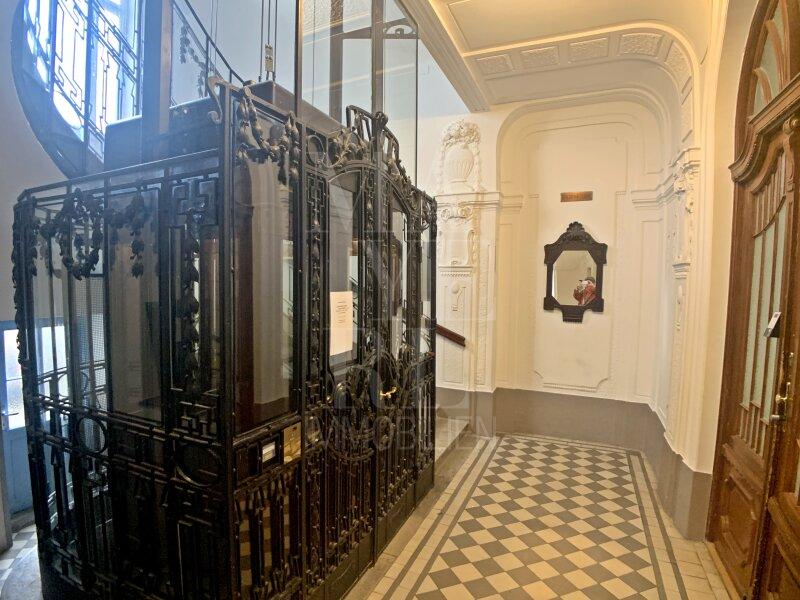 - schöne große Fenster, hohe Räume, Flügeltüren, Lift,
