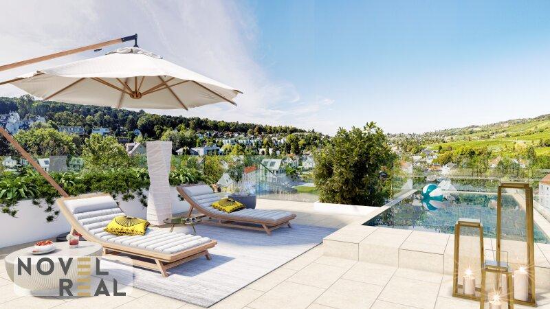 - Der Weitblick auf die Döblinger Weinberge lädt zum Genießen ein, ob von der Aussichtsterrasse, vom Wohnzimmer oder den wunderschön angelegten Gärten.