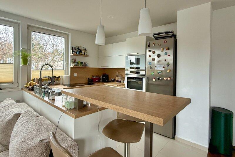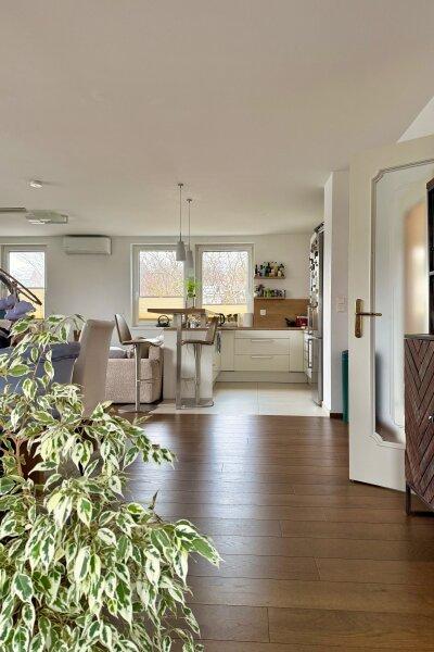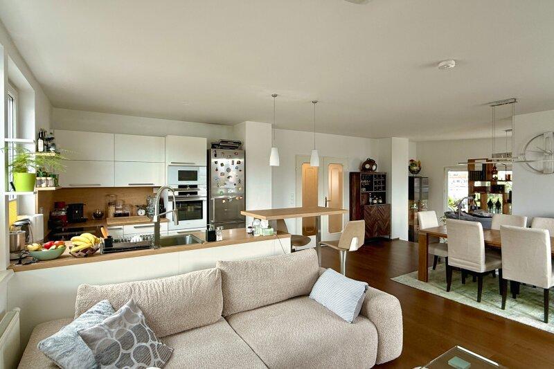 Über den Eingangsbereich/Garderobe gelangt man zentral in alle Räume. Die Wohnung verfügt über ein Badezimmer mit Dusche, eine separate Toilette mit Handwaschbecken und ein Schlafzimmer. Die helle, geräumige Wohnküche macht einen sehr freundlichen Eindruck - die Küchenzeile (DAN-Küche mit SIEMENS Geräten) ist voll ausgestattet und sehr gut dimensioniert - ein perfekter Platz um mit Freunden Zeit zu verbringen. Der Wohnbereich und die als Wintergarten deklarierte Fläche sind durch drei Stufen optisch unterteilt. Dieser Teil eignet sich sehr gut als Arbeitsbereich oder gemütliche Leseecke. Die grandiose Terrasse ist direkt vom Wohnzimmer aus begehbar und bietet genügend Platz um seinen Hobbies nachzugehen. Ob für Grillabende mit Freunden, als Dachgarten, für sportliche Aktivitäten, als Relaxzone mit Jacuzzi oder einer Mischung aus allem, hier wird jeder zur Entfaltung kommen und sein Zuhause auch als Wohlfühlzone erachten. Für einen kürzeren Weg, oder auch für Besucher, gibt es einen weiteren Terrassenzugang vom privaten Treppenhaus. Die Raumhöhe in den Wohnräumen beträgt 2,60 Meter und trägt ebenfalls positiv zum Wohnklima bei!