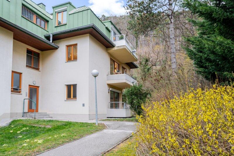 Alle Räume sind zum ruhigen Innenhof ausgerichtet eine echte Seltenheit. Der Balkon lädt dazu ein, den Tag entspannt ausklingen zu lassen und die besondere Atmosphäre dieser Wohnanlage zu genießen. Inklusive Ausblick auf die Burgruine Rauheneck.