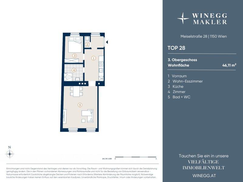 Die Liegenschaft befindet sich in der ruhig gelegenen Meiselstraße, in unmittelbarer Nähe zur U3-Station Johnstraße und zum Meiselmarkt.