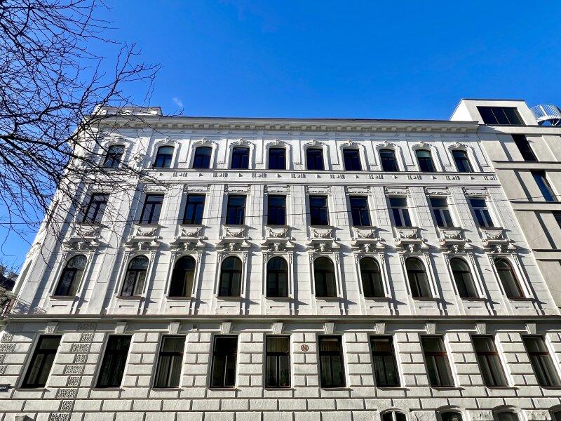 Dieser klassischer Wiener Stilaltbau ist eine 4-geschoßige Eckliegenschaft mit einer gegliederten Fassade, welche sich in einem guten und gepflegten Gesamtzustand befindet. Insgesamt stehen 29 Einheiten zum Verkauf, neben den bestandsfreien Einheiten können noch 6 unbefristet vermietete Wohnungen und ein ca. 165 m² großes Geschäftslokal als Investment erworben werden.