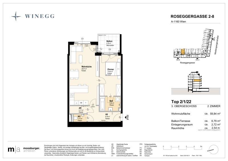 In der Roseggergasse 28, nahe des Wilhelminenbergs in 1160 Wien, entstehen insgesamt 124 exklusive Eigentumswohnungen. Die Wohnflächen variieren zwischen 39 und 245 m² und bieten zwischen 2 und 6 Zimmern. Darüber hin-aus bereichern private Freibereiche wie Eigengärten, Balkone, Terrassen, Loggien und spektakuläre Dachterrassen mit Blick auf die umliegenden Wiener Berge das Wohnerlebnis.