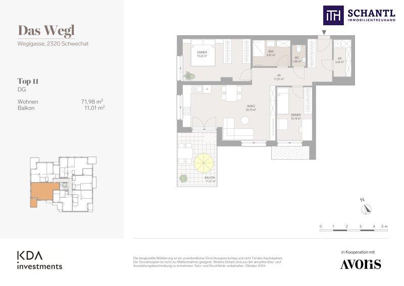 Wohnfläche: ca. 71,98 m² + Balkon: ca. 11,01 m² + Kellerabteil: ca. 2,30 m²