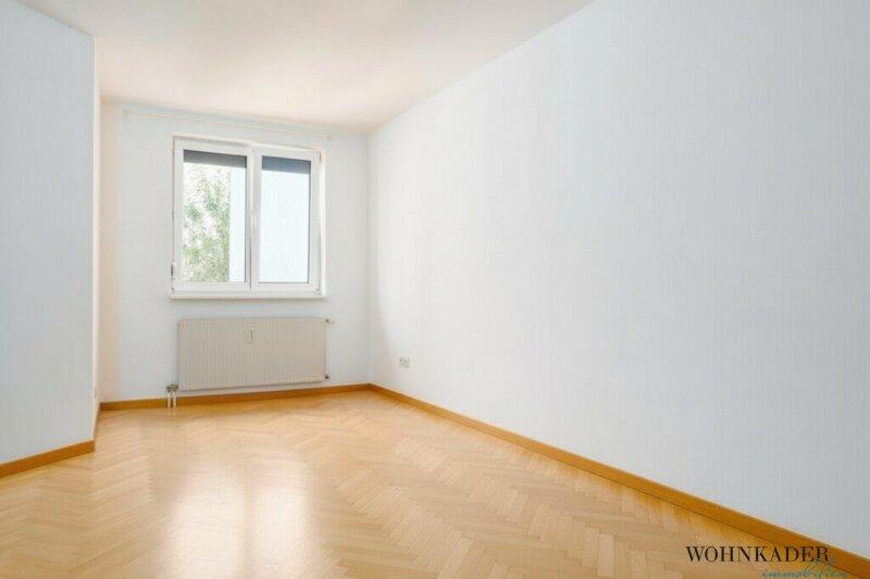 Rechterhand befinden sich zwei ruhige Schlafzimmer, ein Badezimmer mit Badewanne sowie ein getrenntes WC. Der Vorraum bietet zudem ausreichend Platz für eine Garderobe oder zusätzlichen Stauraum.