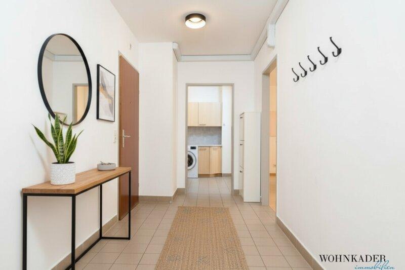 Beim Betreten empfängt Sie ein großzügiger, offener Vorraum, von dem aus alle Räume separat begehbar sind ideal für Familien oder Paare mit Platzbedarf. Der geräumige Wohnbereich mit offen gestalteter Eckküche bietet eine gemütliche Wohlfühlzone und lädt zum Entspannen oder gemeinsamen Kochen ein.
