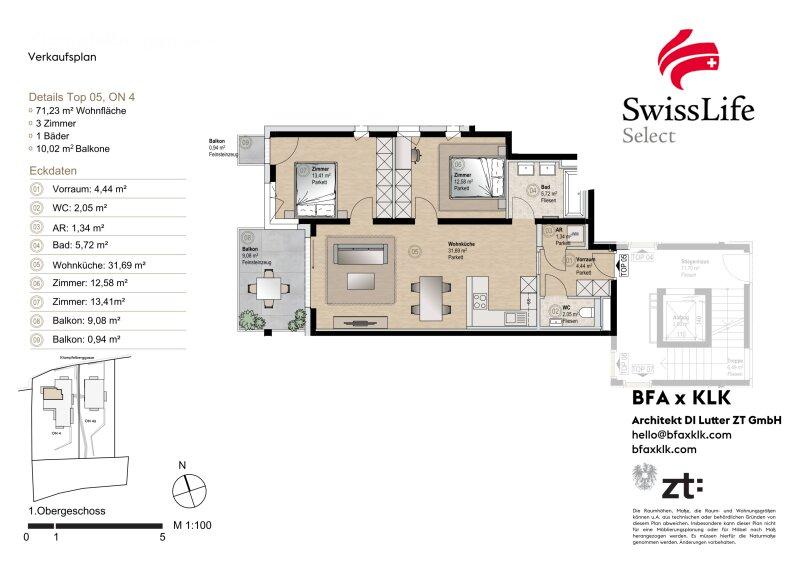 Auf ca. 71,23 m² Wohnfläche erwarten Sie großzügige Räume, eine hochwertige Ausstattung und zwei Balkone zu je 9,08 m² und 0,94 m², der zusätzlichen Freiraum im Grünen bietet.