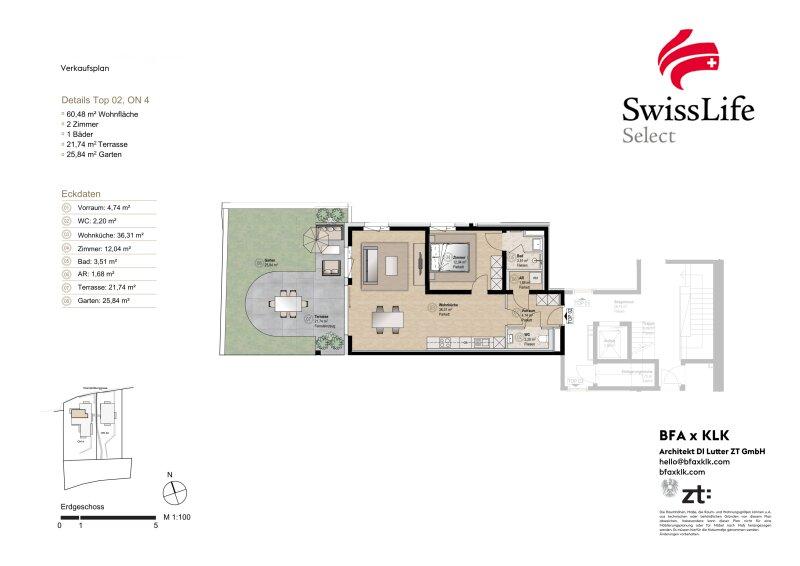 Diese hochwertige Gartenwohnung überzeugt durch eine durchdachte Raumaufteilung und eine großzügige Freifläche, die das Wohnen ins Freie erweitert.