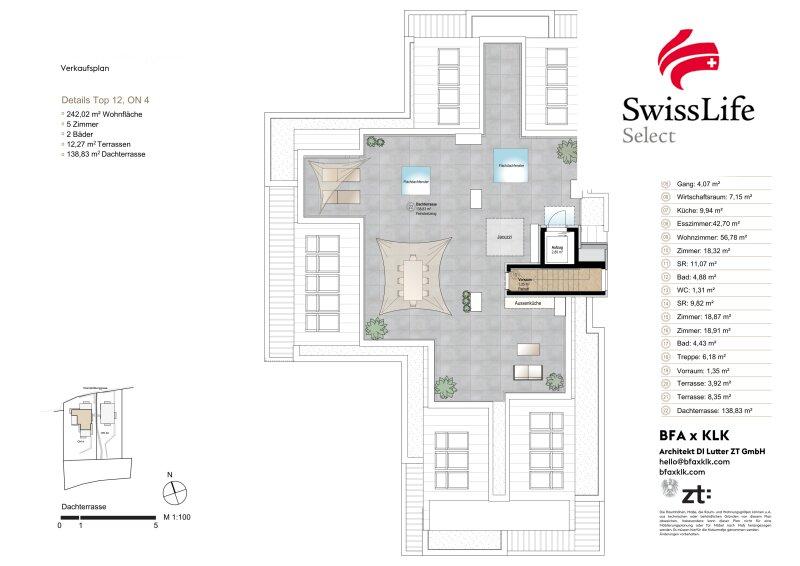 Das absolute Highlight ist die beeindruckende Dachterrasse, die einen außergewöhnlichen Blick über die Grünlandschaft Dornbachs eröffnet und den Wohnraum ins Freie erweitert.