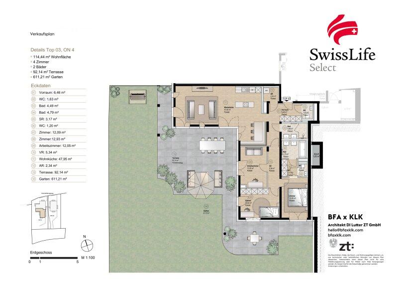 Hochwertige Materialien, fein abgestimmte Oberflächen und modernste Haustechnik unterstreichen den exklusiven Charakter des Projekts. Fußbodenheizung und sanfte Deckenkühlung sorgen über Betonkernaktivierung ganzjährig für ein angenehmes Raumklima, während intelligente Steuerungssysteme Komfort und Sicherheit vereinen.