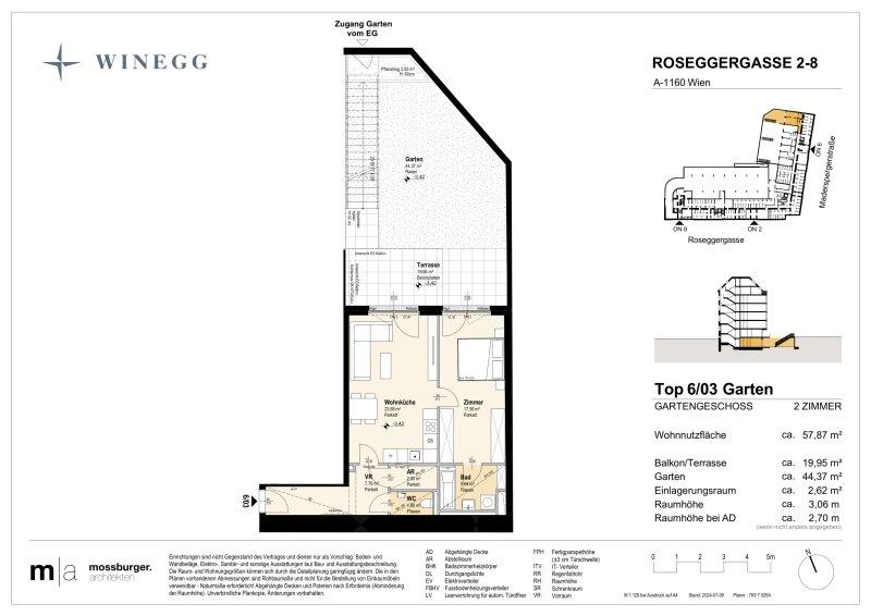 In der Roseggergasse 28, nahe des Wilhelminenbergs in 1160 Wien, entstehen insgesamt 124 exklusive Eigentumswohnungen. Die Wohnflächen variieren zwischen 39 und 245 m² und bieten zwischen 2 und 6 Zimmern. Darüber hin-aus bereichern private Freibereiche wie Eigengärten, Balkone, Terrassen, Loggien und spektakuläre Dachterrassen mit Blick auf die umliegenden Wiener Berge das Wohnerlebnis.