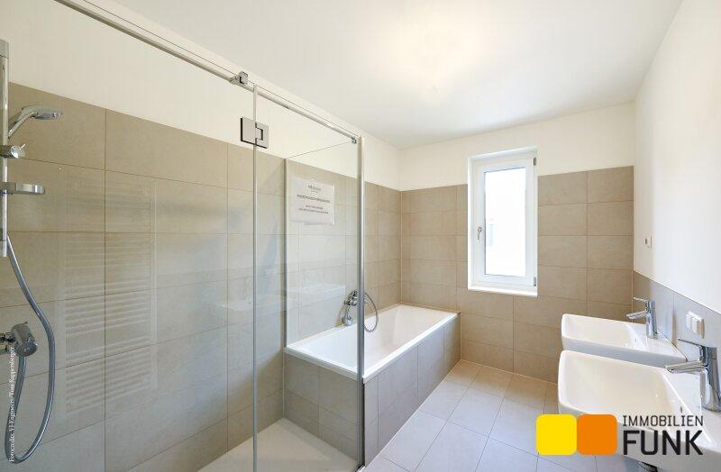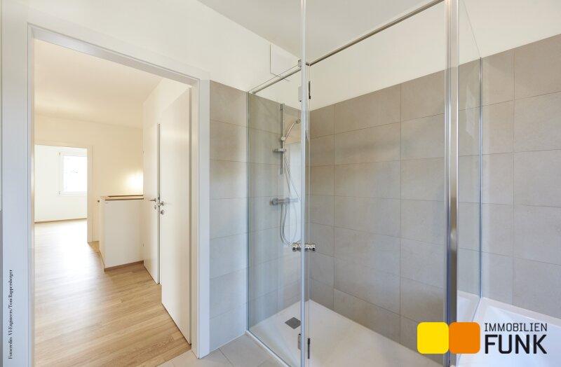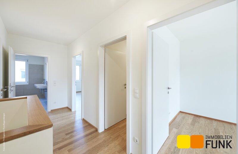 Im 01. Obergeschoß erschließt der zentral angelegte Flur (ca. 6,96 m²) zwei großzügige Schlafzimmer. Eines davon ist als Master-Bedroom (ca. 17,19 m²) mit Platz für einen großen Schrank geplant. Das andere Schlafzimmer weist eine Fläche von ca. 12,27 m² auf. Ein geräumiges Badezimmer (ca. 7,74 m²) mit Badewanne und Dusche, einem Doppelwaschtisch, einem Handtuchheizkörper sowie dem Waschmaschinenanschluss finden Sie ebenso wie ein separates WC (ca. 2,66 m²) mit Handwaschbecken und eine zusätzliche Abstellnische. Die Innenstiege führt Sie vom Flur aus in das lichtdurchflutete Dachgeschoß, das zwei weitere Schlafräume mit jeweils eigenen Dachterrassen bietet.