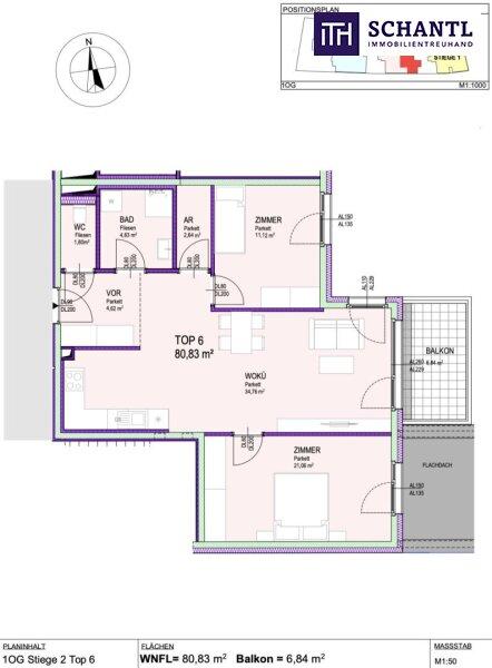 Wohnfläche: ca. 80,83 m² + Balkon: ca. 6,84 m² + Kellerabteil