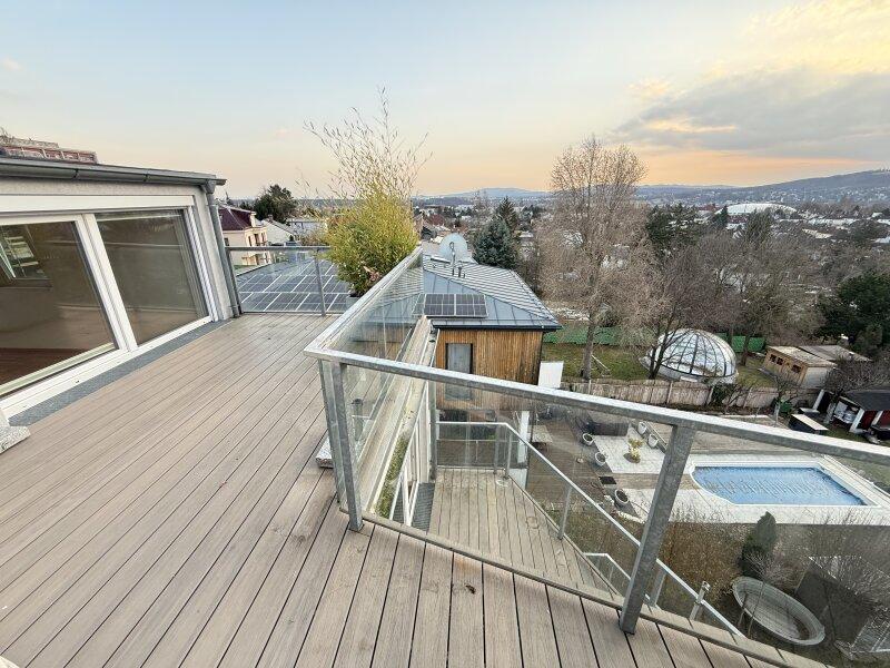 Das Highlight ist die große, vor dem Schlafzimmer liegende Süd Terrasse mit herrlichem Rundumblick.