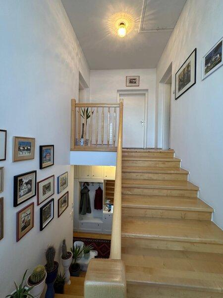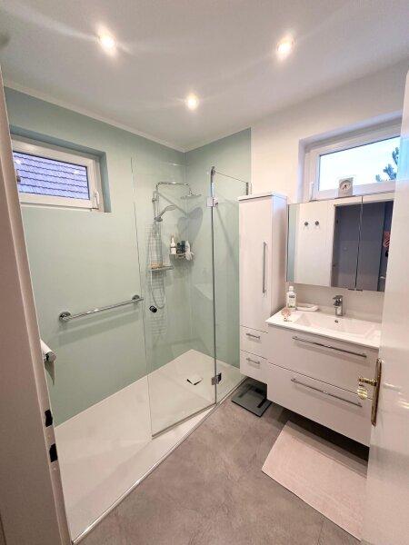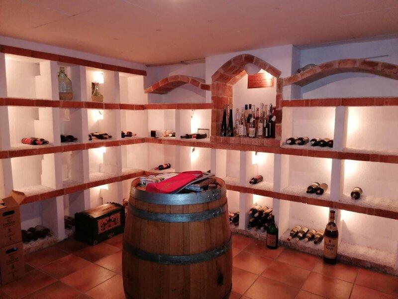Auch der Keller bietet viele praktische Extras für den Familienalltag: Neben einer Waschküche, einem zusätzlichen WC sowie Heizungs- und Lagerräumen befindet sich hier auch ein stimmungsvoller Weinkeller mit charmantem Sichtmauerwerk. Technisch wurden bereits wichtige Erneuerungen vorgenommen: Die Steuerung der Ölheizung wurde 2024 erneuert, die Kaminsanierung erfolgte im Jahr 2000, dreifach verglaste Fenster wurden 2006 eingebaut und das barrierefreie Badezimmer wurde 2021 frisch renoviert.