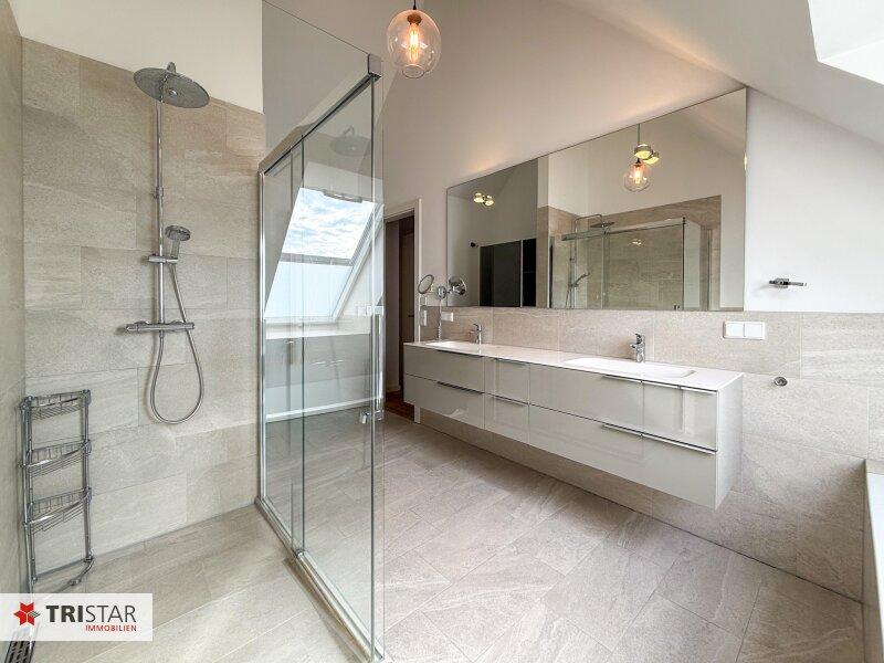 * 1 Badezimmer mit Dusche, Wanne, 2 Waschbecken und WC