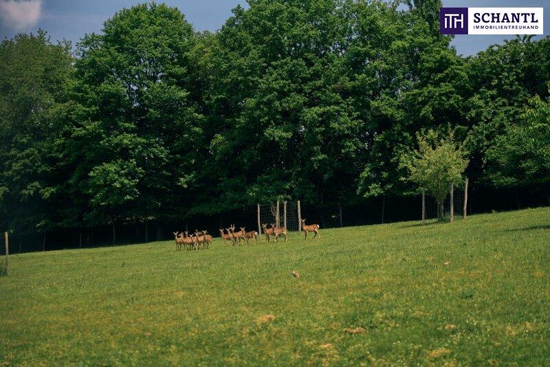 Ein ca. 15.000 m² großes Wildgehege, direkt angrenzend und das Anwesen auf zwei Seiten umfassend, beherbergt derzeit Sika-Hirsche und Kamerunschafe. Ein lebendiger Landschaftsbestandteil mit optionaler Weiterbetreuung nach dem Kauf im Kaufpreis inbegriffen.