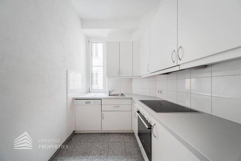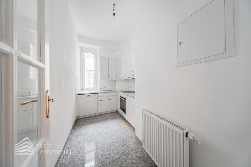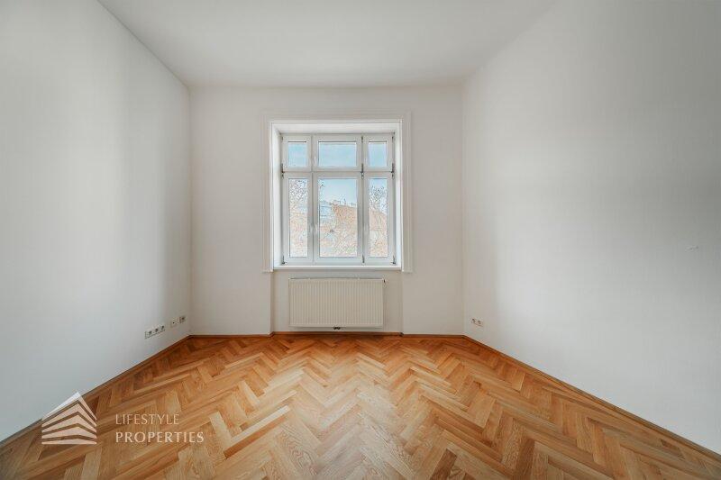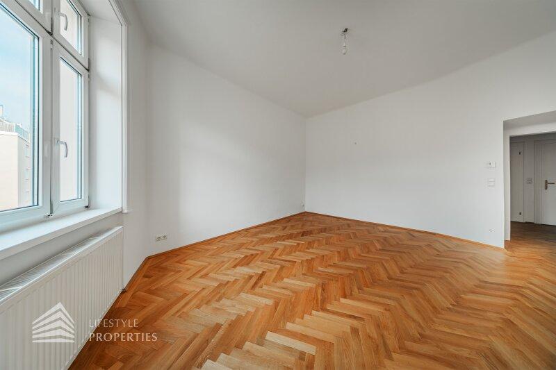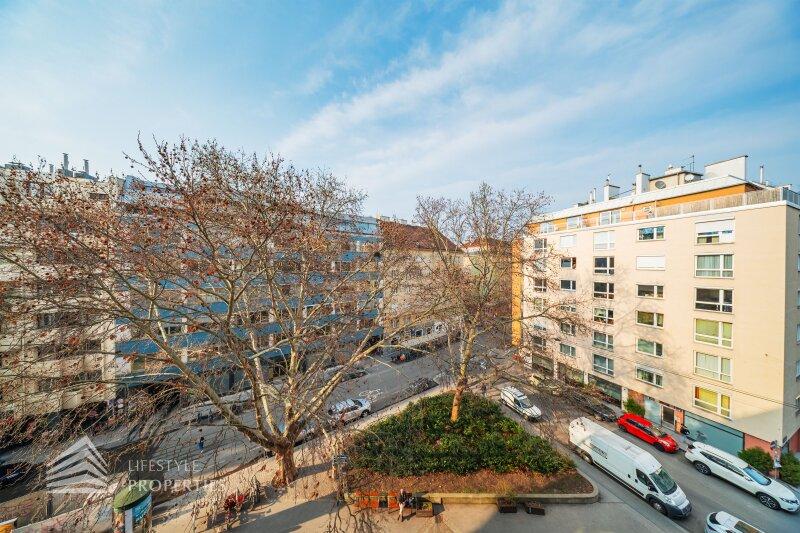 In diesem reizvollen Jugendstilhaus erwartet Sie eine schön sanierte 2-Zimmer Wohnung im 3. Liftgeschoss. Genießen Sie den herrlichen Grünblick, der Ihnen Ruhe und Erholung vom hektischen Stadtleben garantiert. Die Wohnung mit einer Wohnfläche von ca. 54 m², die sich auf einen einen perfekten Grundriss aufteilt, verfügt über eine Raumhöhe von ca. 3,05 m. Das hochwertige Fischgrätparkett erstrahlt nach dem Schleifen wieder in neuem Glanz. Sprossen-Glastüren zur Küche und zum Wohnzimmer lassen Licht durchfluten und unterstreichen den Charakter der Wohnung.