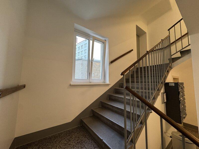 Ein frisch saniertes und ausgemaltes Stiegenhaus sorgt für einen einladenden ersten Eindruck