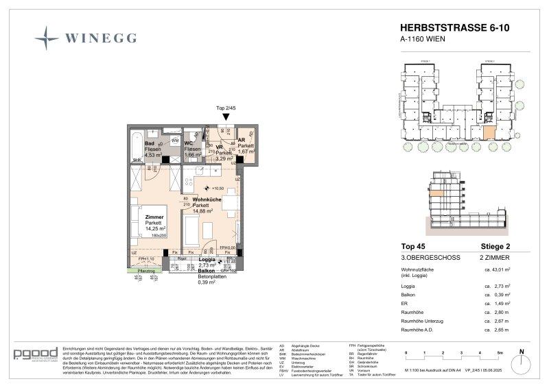 In einer verkehrsberuhigten Sackgasse und direkt am Arik-Brauer-Park gelegen entstehen 150 hochwertige Eigentumswohnungen mit Wohnflächen von ca. 30 m² bis 130 m², die für unterschiedlichste Lebensbedürfnisse und Wohnkonzepte ausgelegt sind. Die Wohnungen bieten attraktive Extras wie private Gärten, Balkone, Loggien und eine beeindruckende Panorama-Terrasse, die einen atemberaubenden 360° Panoramablick über Wien eröffnet. Mit großzügigen Raumhöhen schaffen wir ein offenes und luftiges Wohngefühl. Darüber hinaus stehen Tiefgaragenstellplätze zur Verfügung und moderne Energiekonzepte, wie Photovoltaik und Fernwärme, garantieren eine nachhaltige und effiziente Energieversorgung. Hier wohnen Sie stilvoll, zukunftsorientiert und überaus komfortabel.