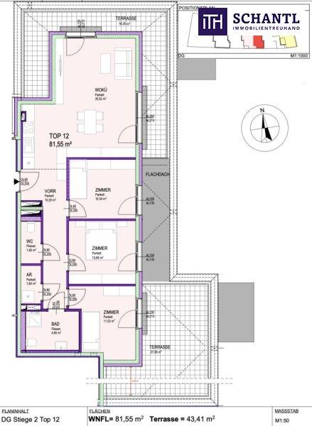 Wohnfläche: ca. 81,55 m² + 2 Terrassen: ca. 43,41 m² + Kellerabteil