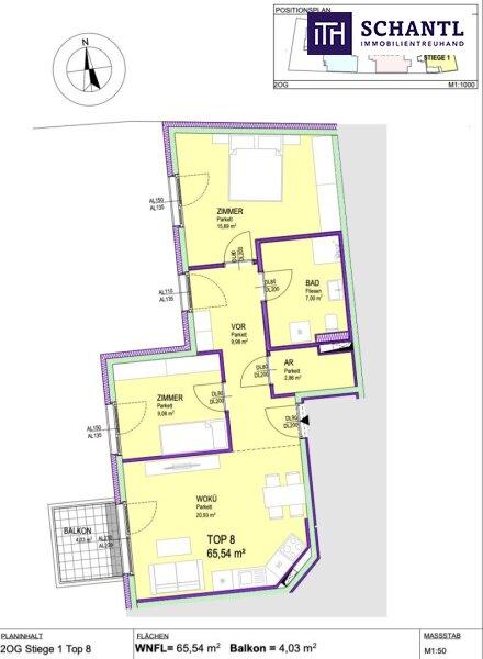 Wohnfläche: ca. 65,44 m² + Balkon: ca. 4,03 m² + Kellerabteil